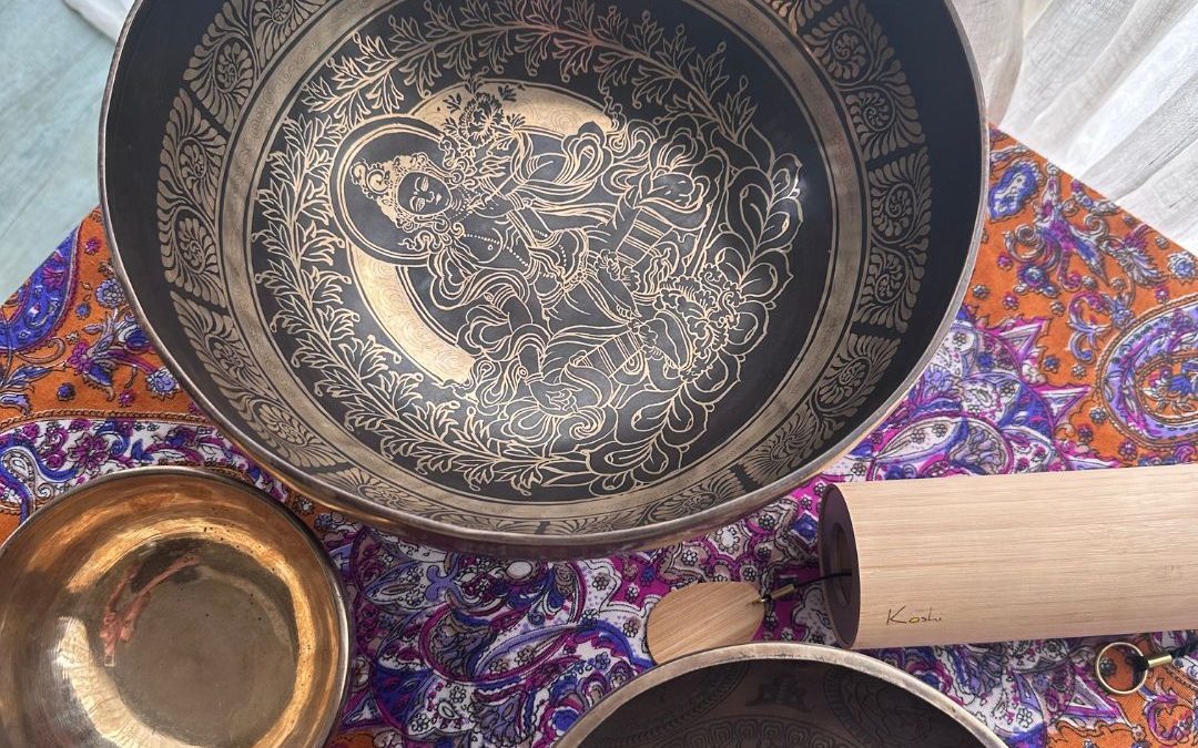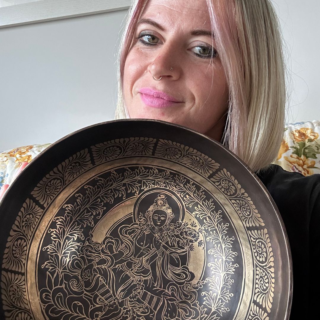 Charlotte uses her Tara bowl that planted the seed of her Sound Healing journey in 2024, lovingly adopted from Ali P, The Blissful Bowl Lady.